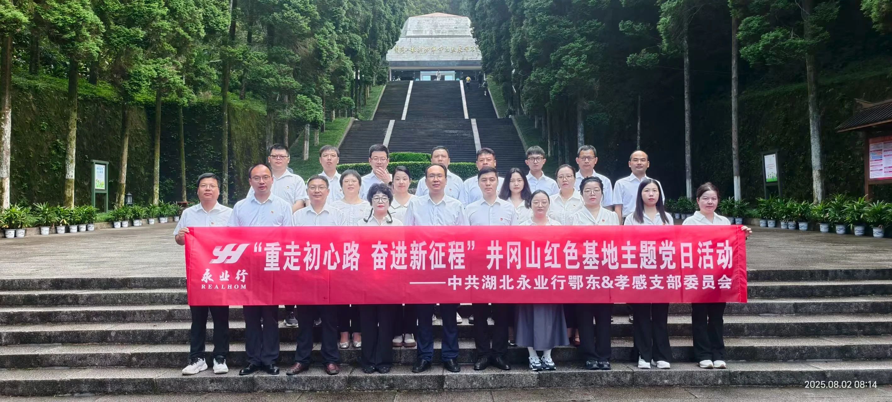 8月2日,为深入开展党史学习教育,传承红色基因,加强党性修养,永业行助理总裁兼鄂东区总经理徐宇初,孝感分部执行董事张立胜,总经理梁小虎带领鄂东区和孝感分部全体党员及管理团队20余人赴井冈山红色教育基地开展“重走初心路 奋进新征程”主题党日活动。